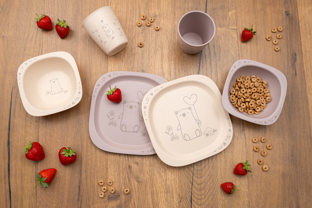 Pjata për ushqim për fëmijë, prej 4 muaj. Formë e sheshtë, e lehtë dhe e rehatshme për t’u mbajtur.